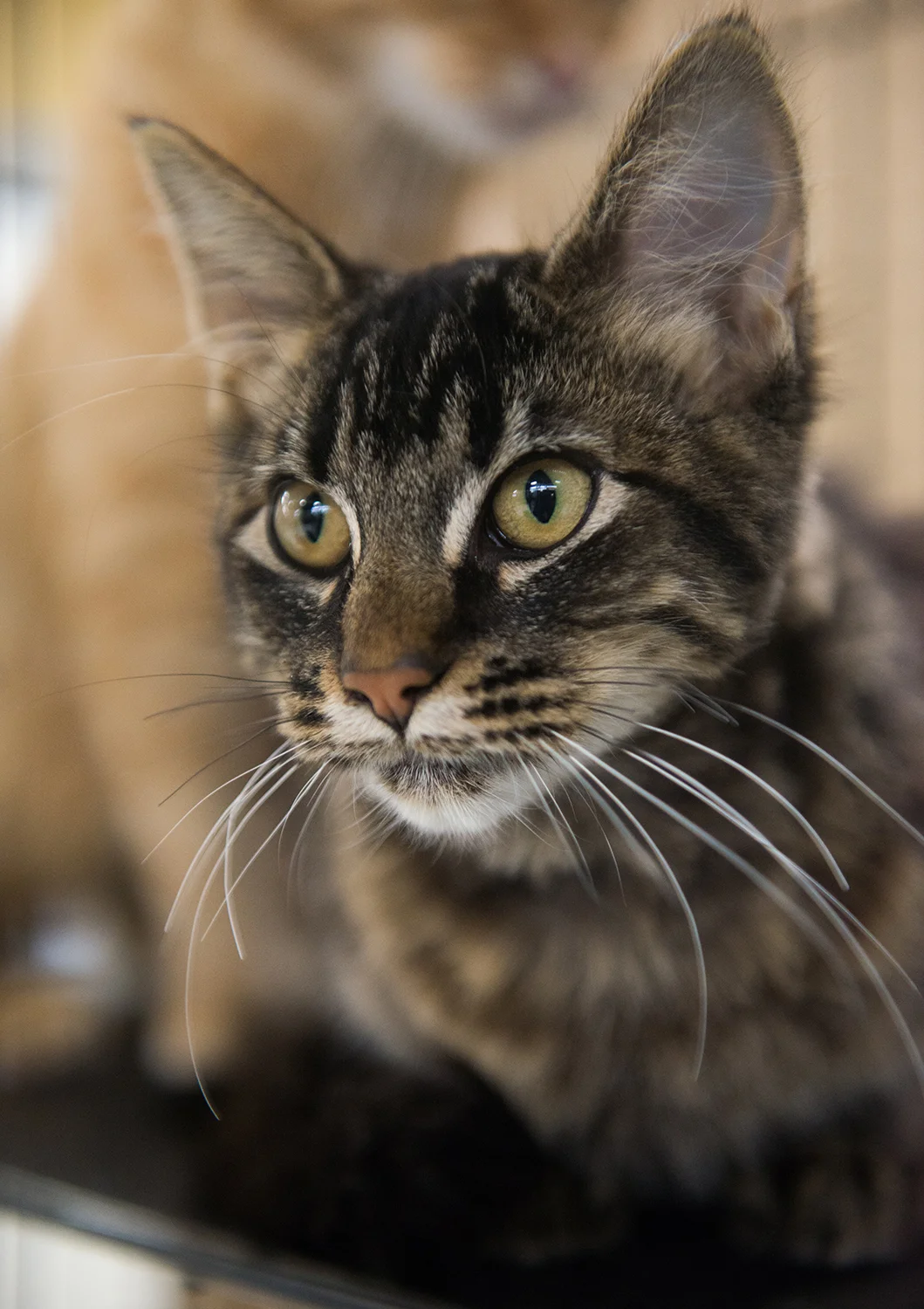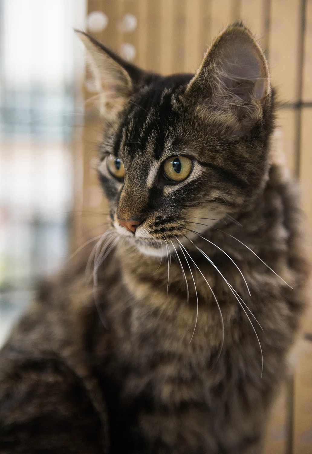 This handsome, fluffy black tabby is about 5 months old (as of Jan. 2019). He is very sweet and cuddly!